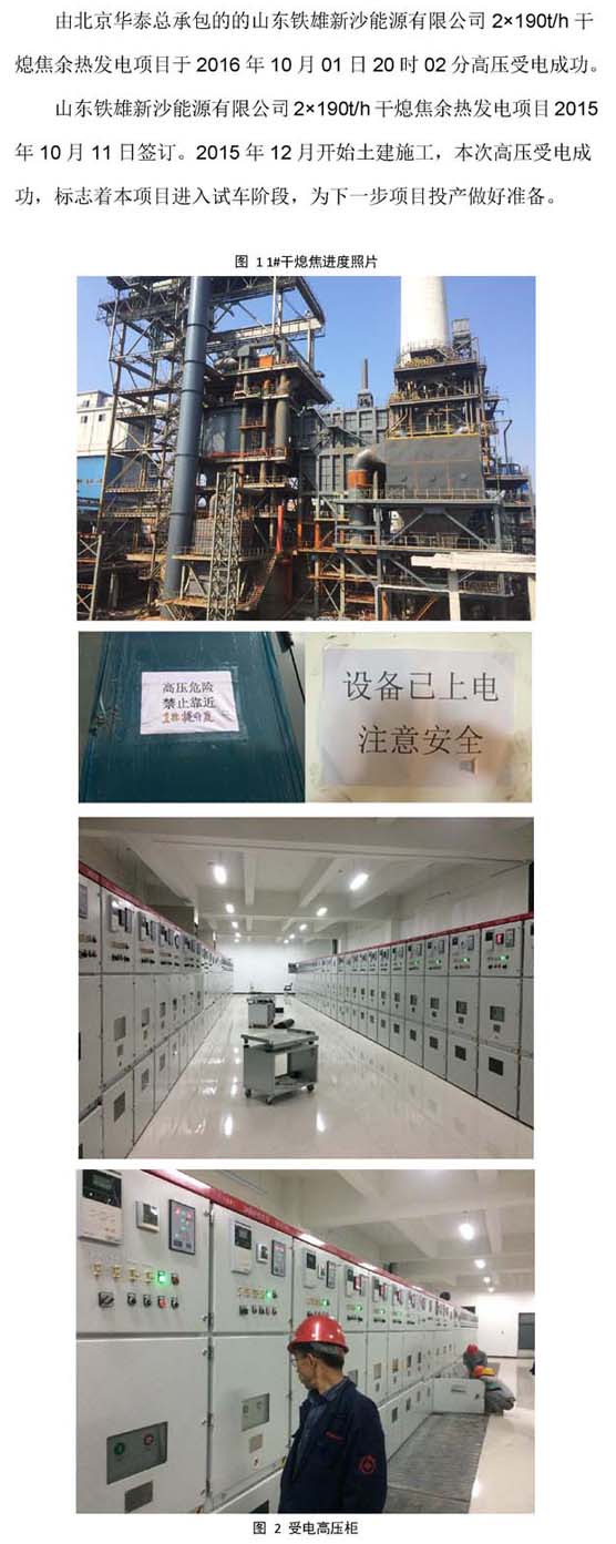山东铁雄新沙能源有限公司 2×190t/h干熄焦余热发电项目高压受电