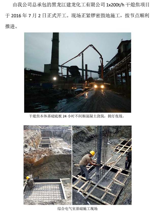 黑龙江建龙1x200th干熄焦项目工程节点报道