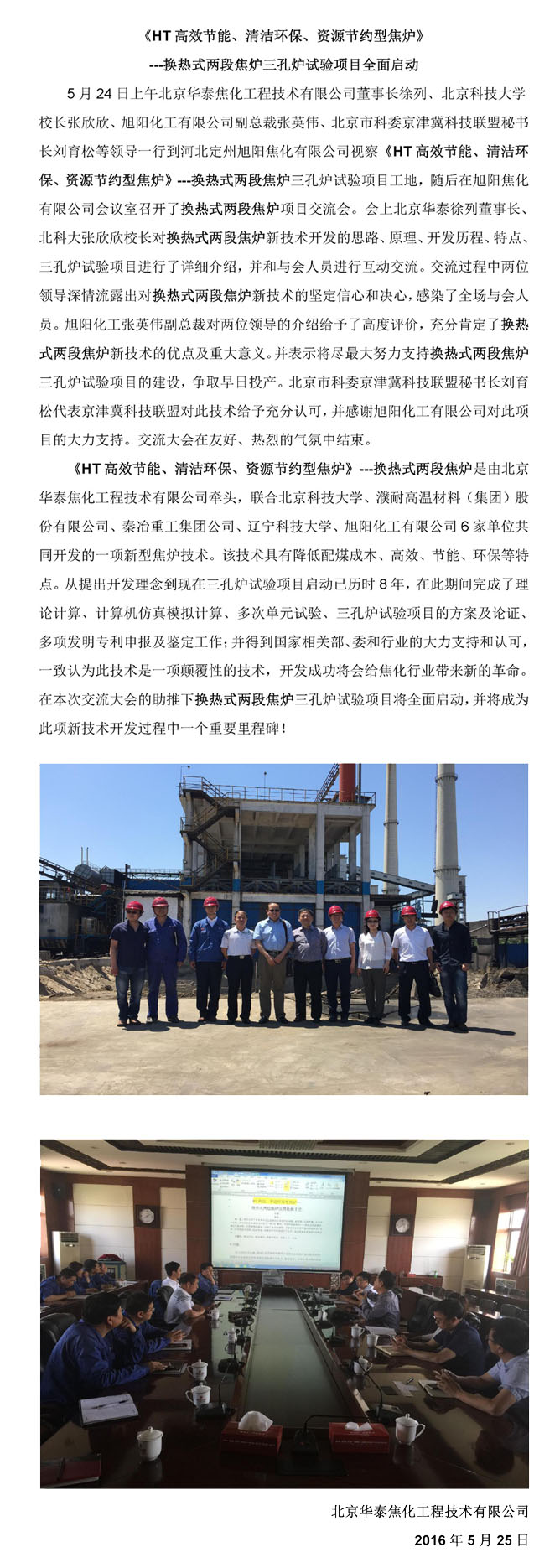 换热式两段焦炉三孔炉试验项目全面启动