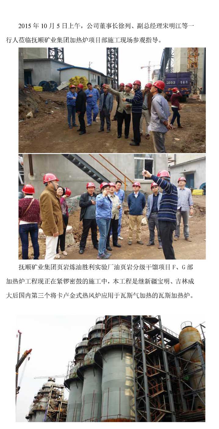 公司董事长徐列、副总经理宋明江等一行人莅临抚顺矿业集团加热炉项目部施工