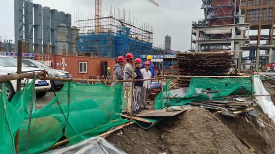 午餐结束,董事长徐列马不停蹄的前往天顺焦化项目部调研。19日凌晨到20日上午,京唐港遭遇了今年以来最大的除雨量,天顺焦化路面积水超过1米,涉水来到项目现场。董事长徐列在现场对102转运站积水严重做出了重要指示,要求项目部想尽一切办法抽水,确保2#、3#本体安全,抽完水后一定要加快施工进度,转运站浇注后尽快回填。施工开车部部长王冬枫要求项目部做好本体基础的沉降和位移观测,使其始终处于受控状态。项目经理李金海对项目的进展情况进行了汇报,虽然102转运站的施工目前遇到了一些困难,但相信在公司的正确领导下,能够交出一份满意的答卷。董事长徐列与天顺总经理崔自双召开了现场会,102转运站基坑抽水、防护和项目投产时间,做了具体的安排,天顺总经理崔自双对董事长徐列在中秋前夕冒雨来到现场推动项目工作表示诚挚的感谢,对bwin必赢国际的干熄焦项目满怀信心,相信bwin必赢国际能够打造精品工程。