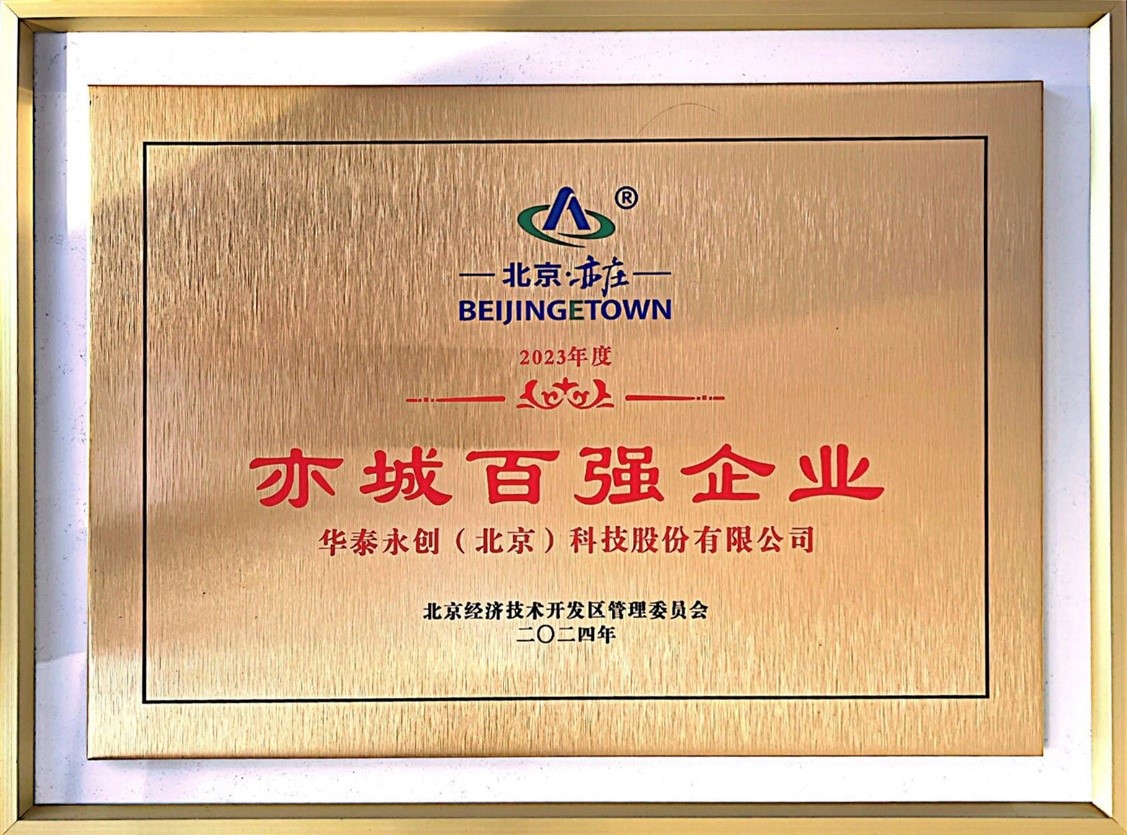 February 23rd, Convention of Optimizing Business Operation Environment of Beijing Yizhuang Economic Development Zone/Boosting High Quality Development was held in Yizhuang, Beijing. In the meeting, Huatai Yongchuang (Beijing) Technology Co., ltd was awarded by the “Top 100 Corporations of Yicheng, 2023”, which is a token that the government highly recognizes the company’s scientific technology and development capacity.